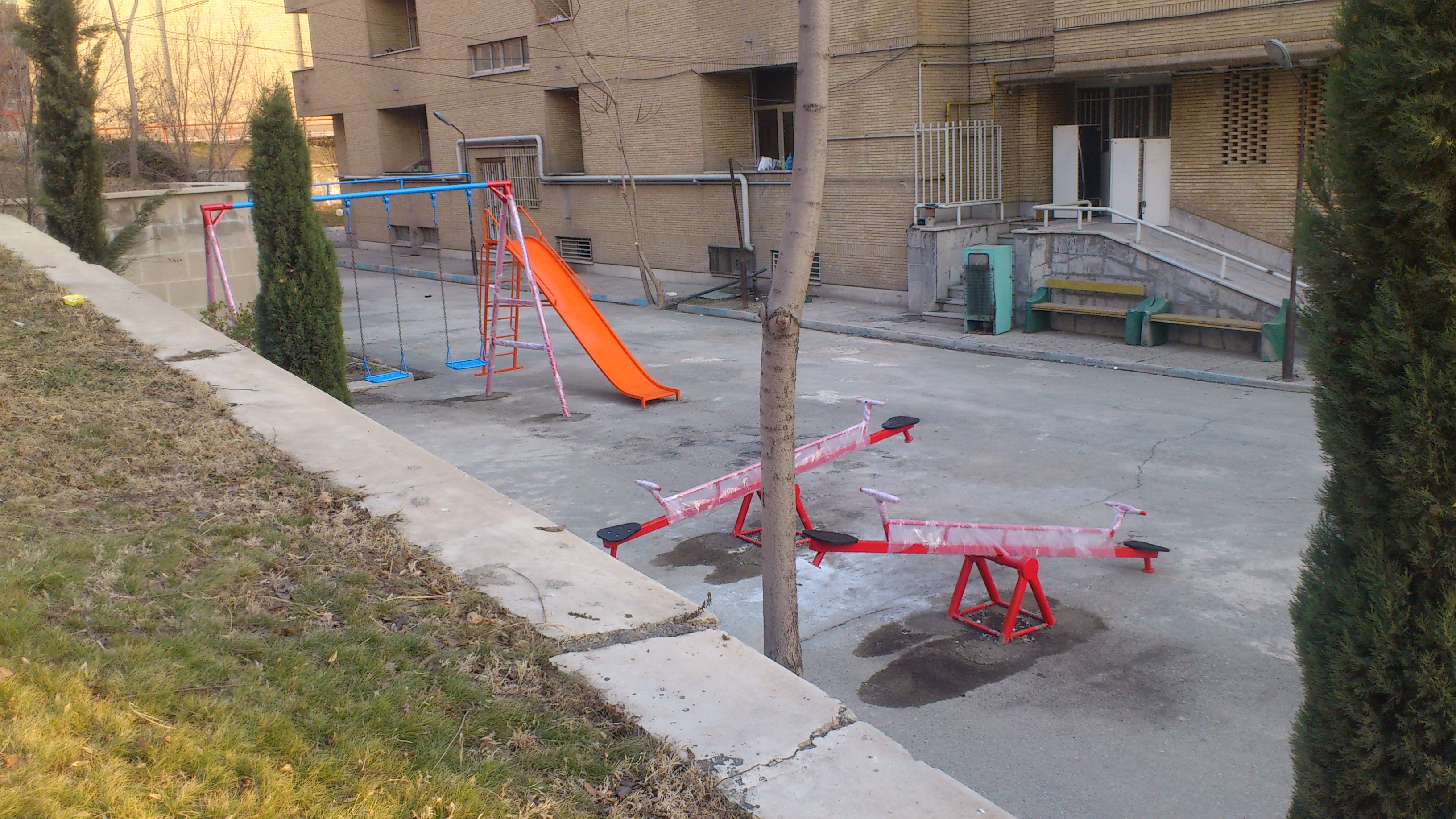 هفته ی پیش داشتم از خوابگاه میومدم بیرون. هوا گرگ و میش بود. خودمم هنوز کامل از خواب بیدار نشده بودم. تو پله ها یه دفعه چشمم افتاد به بیرون دیدم اینا رو نصب کردن! اون روز هنوز تابا کامل نشده بودن. خیلی جای تاب توی خوابگاه خالی بود. :)
